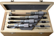- Outside Micrometer Set is satin chrome plated, side lever lock, ratchet stop to micrometer adjustment