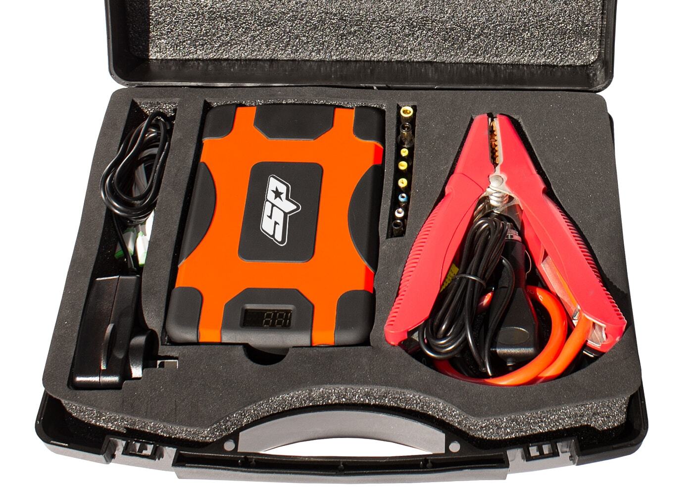 The storage case with EVA insert includes 14 interchangeable tips and cords to connect to most devices, as well as extra heavy duty cable clamps, and chargers. Not just a professional workshop tool, from a safety point of view its also a must for your next camping, fishing, 4 wheel drive or boating adventure